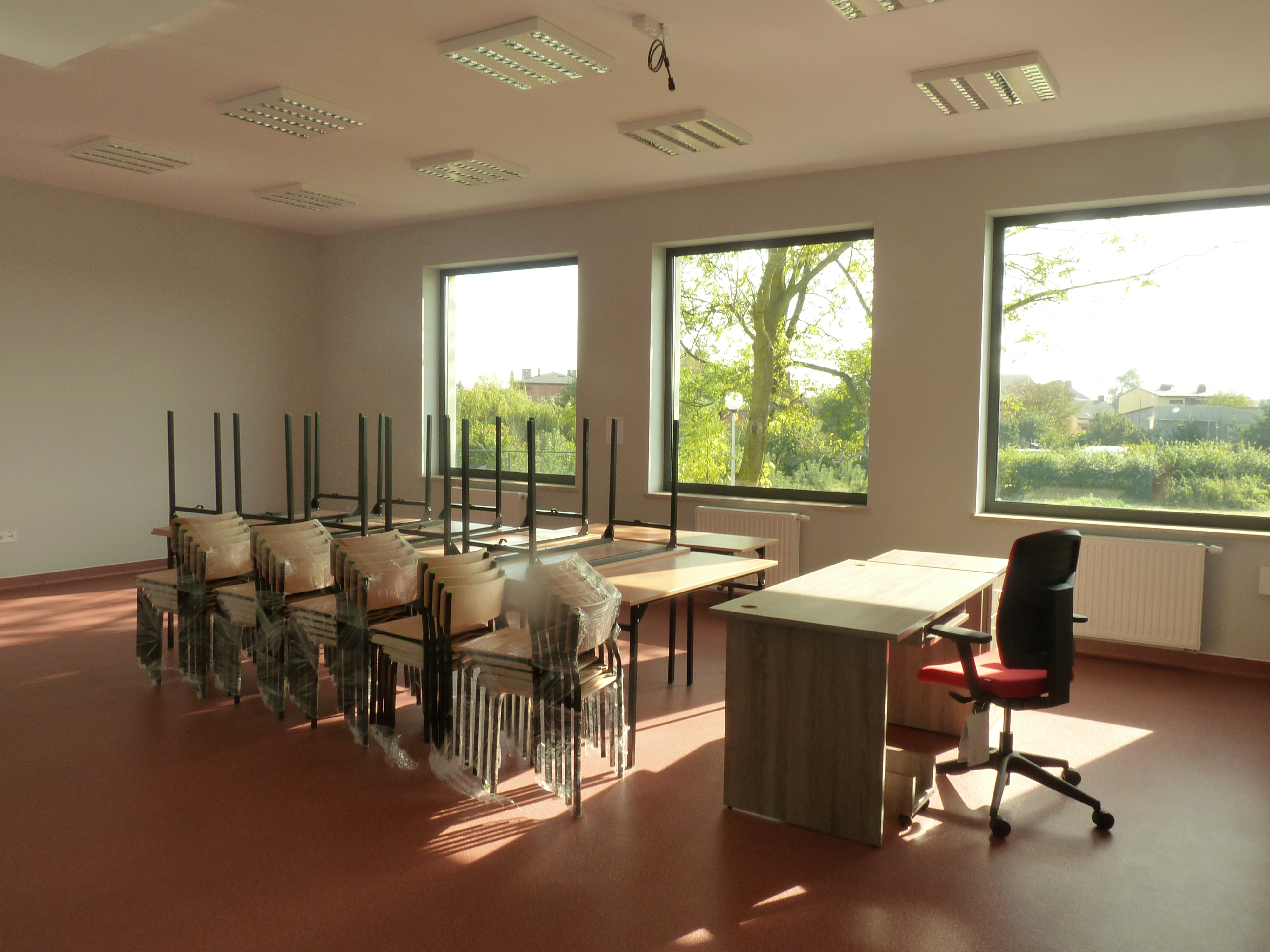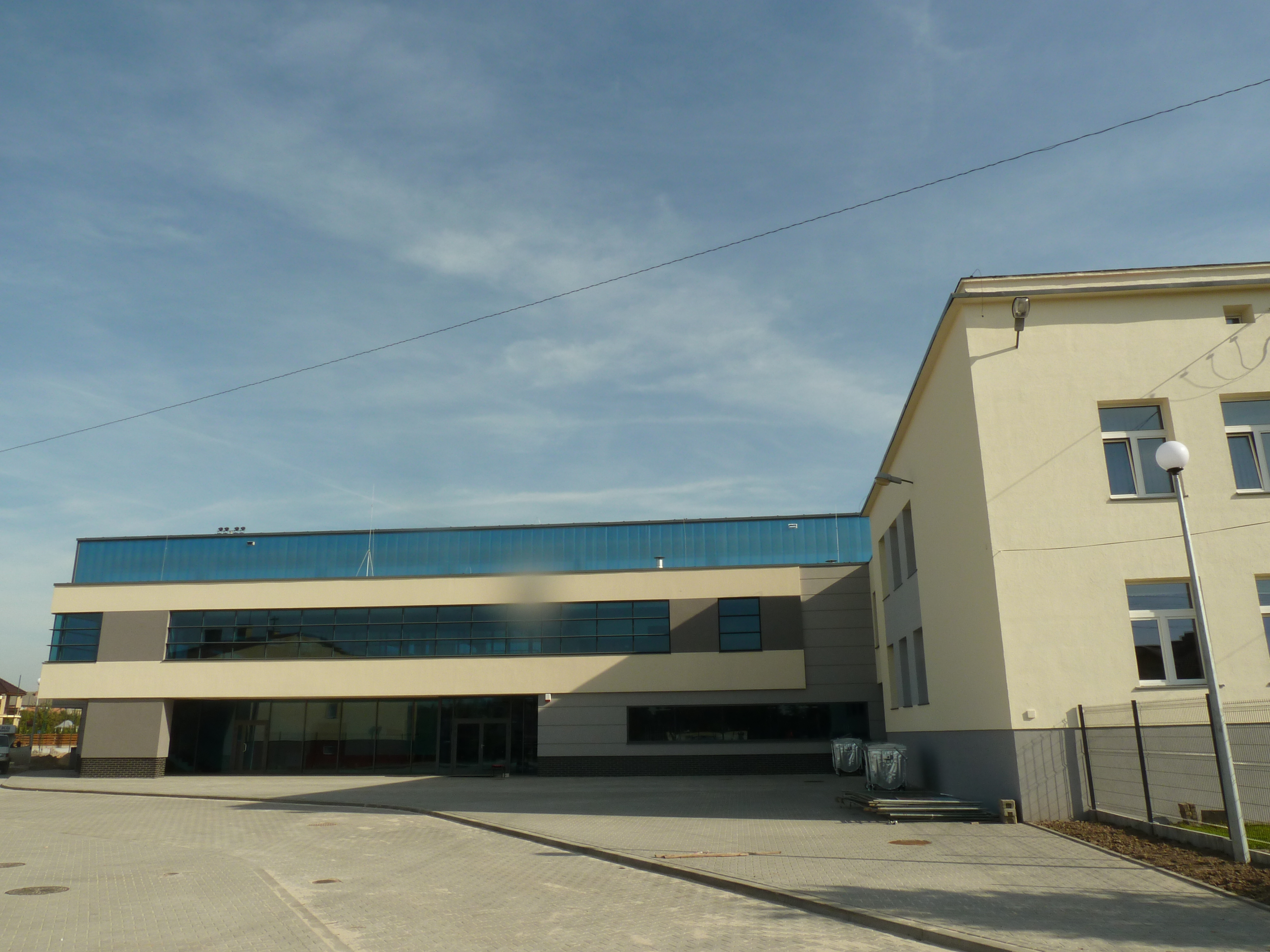 Project realized. The sports hall is used by the high school team in Szczercow; Apart the hall with the tribunes the building locates saunas and a gym.
