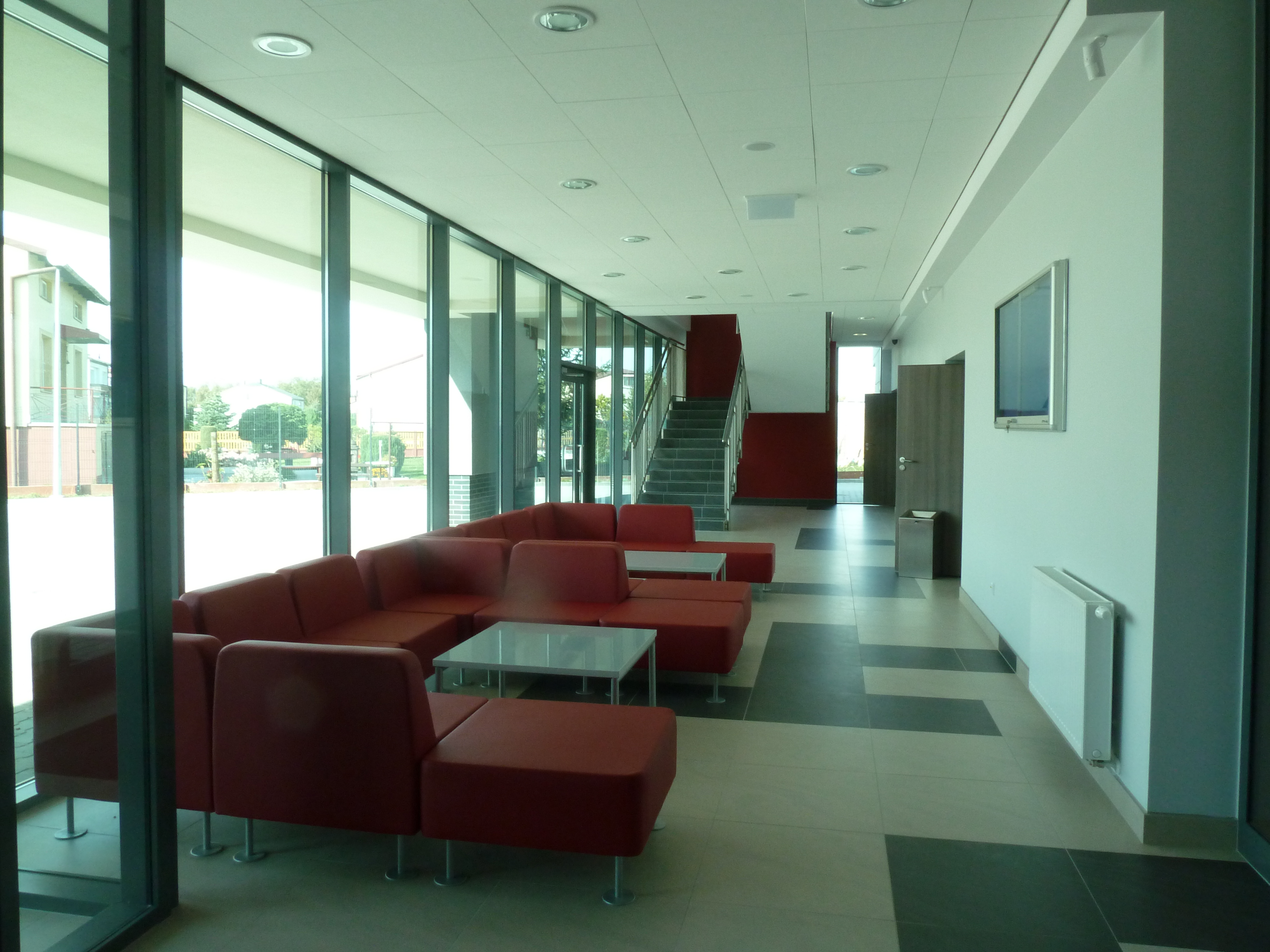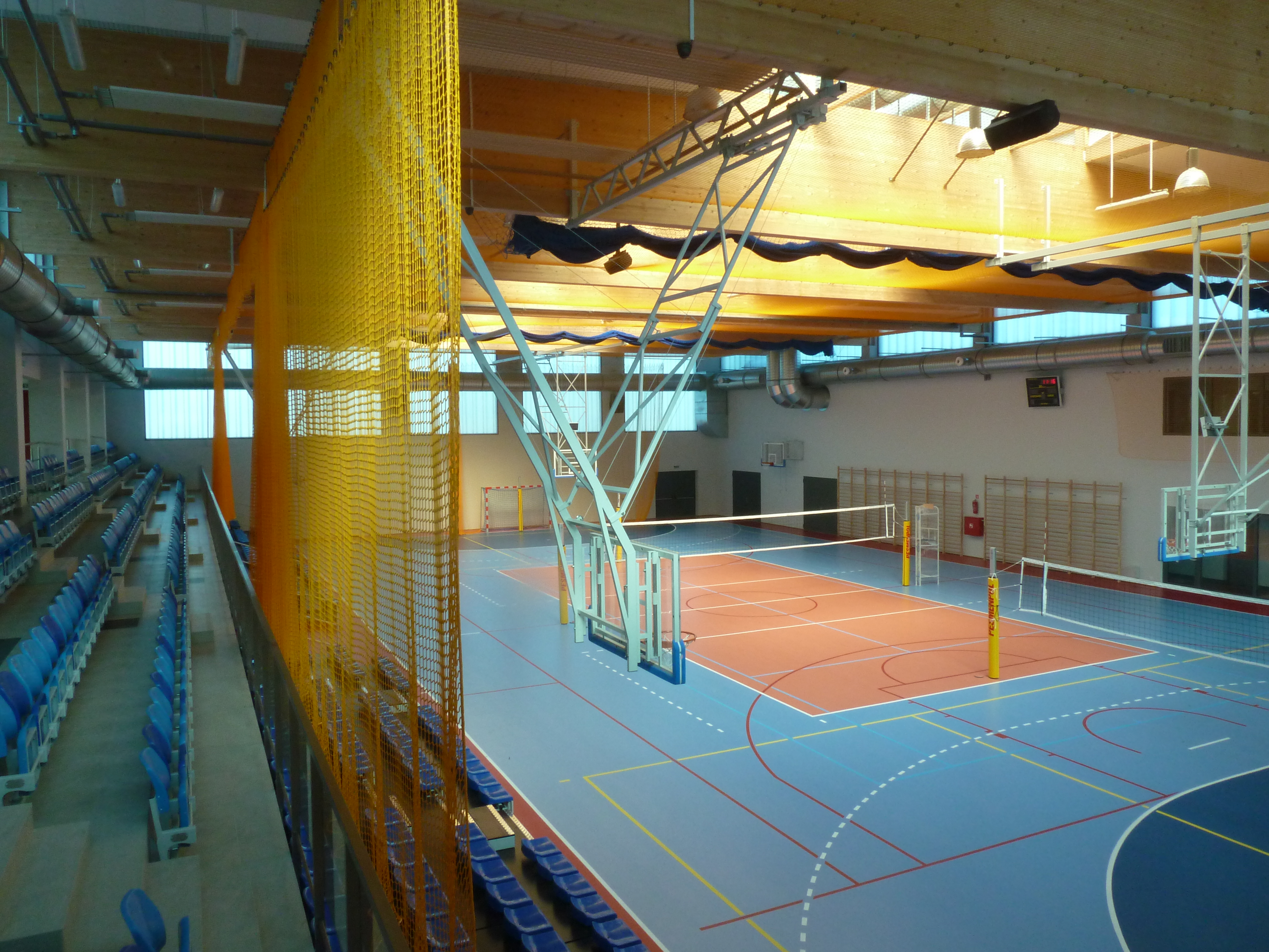 Проект реализован. Спортивный зал используется командой высшей школы в Гццерково; За пределами зала с трибунами m.in. Сауны и тренажерный зал.