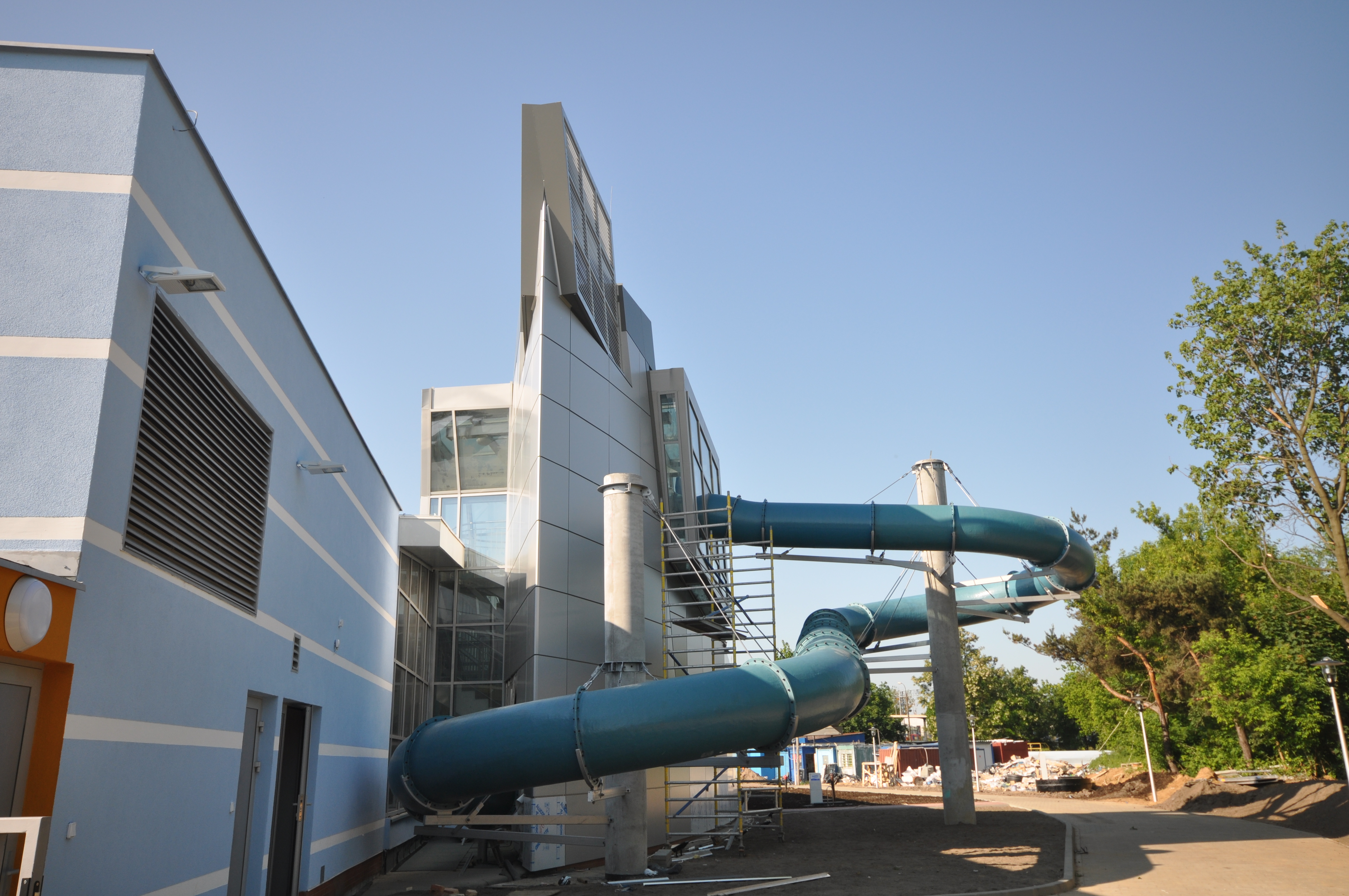 Projekt zrealizowany. Pływalnia znajduje się przy ulicy Sportowej w Nowym Dworze Mazowieckim. Zawiera baseny: sportowy dł. 25m, rekreacyjny, zespół saunowy.