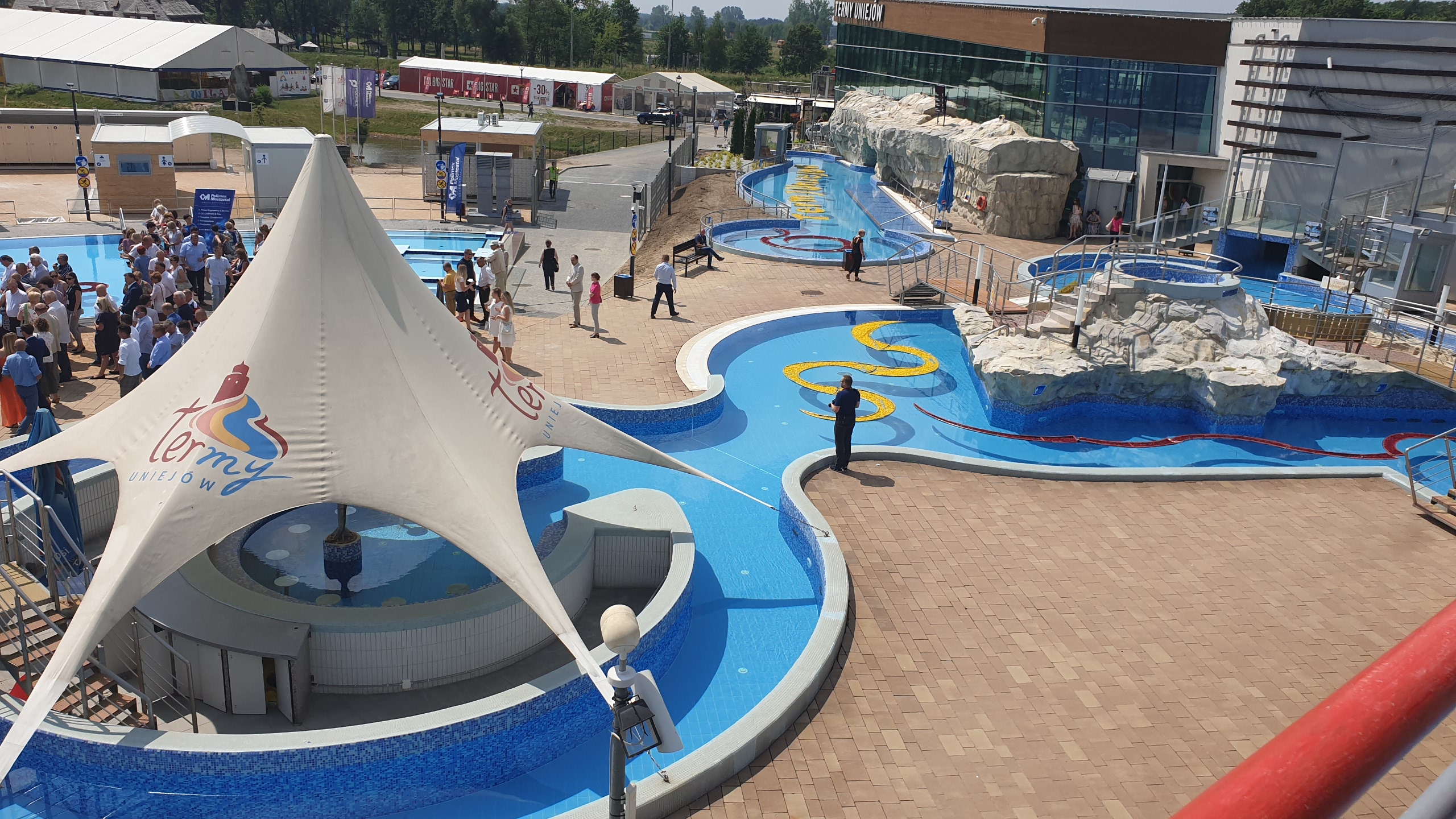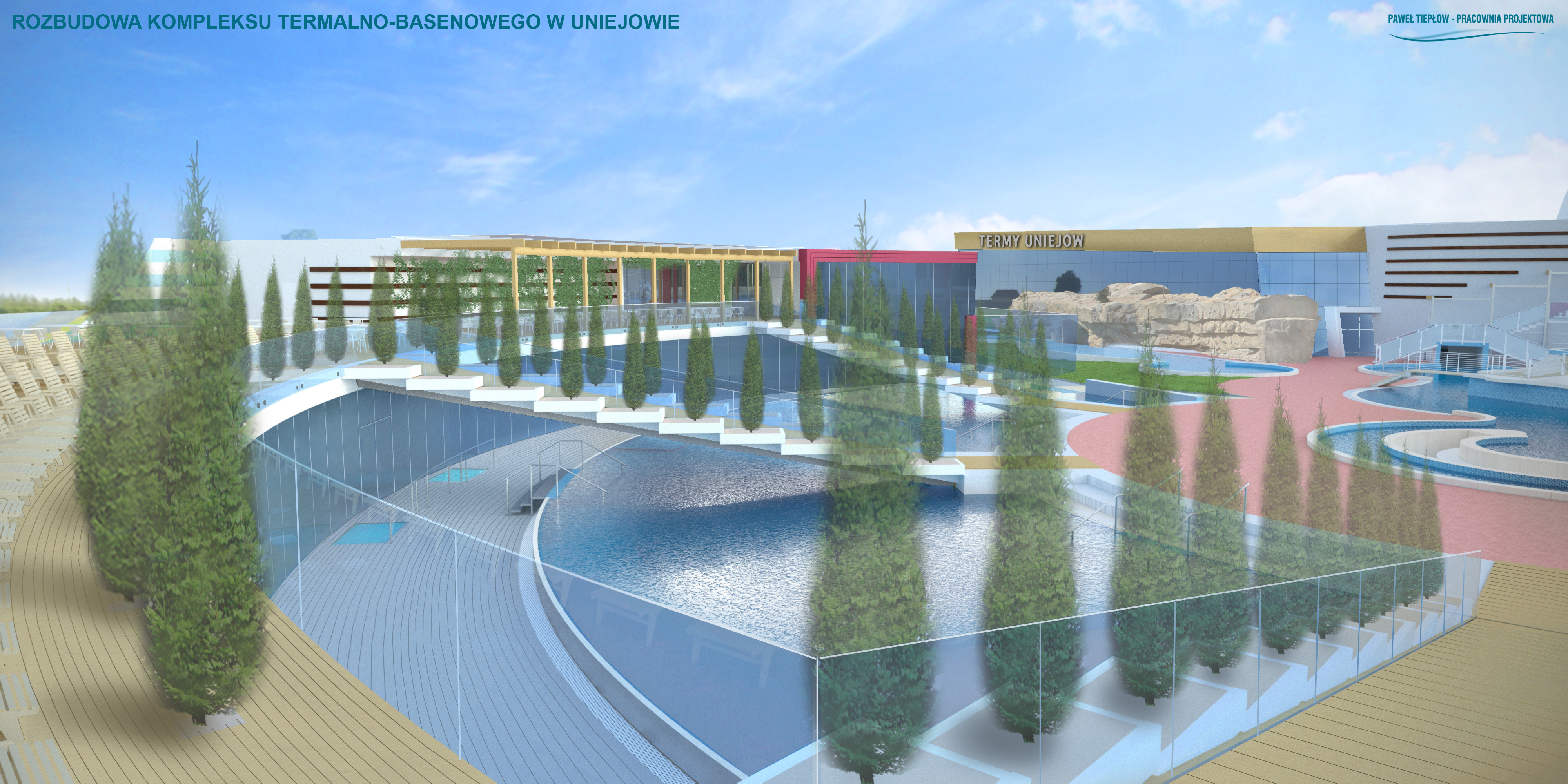 Rozbudowa Term w Uniejowie przewidywała dobudowanie budynku z dodatkowymi przebieralniami i usługami, a także powiększenie kompleksu basenów zewnętrznych o dodatkową dużą nieckę. Stan na 2019 r – powstała jedynie niecka, a budynek nie.